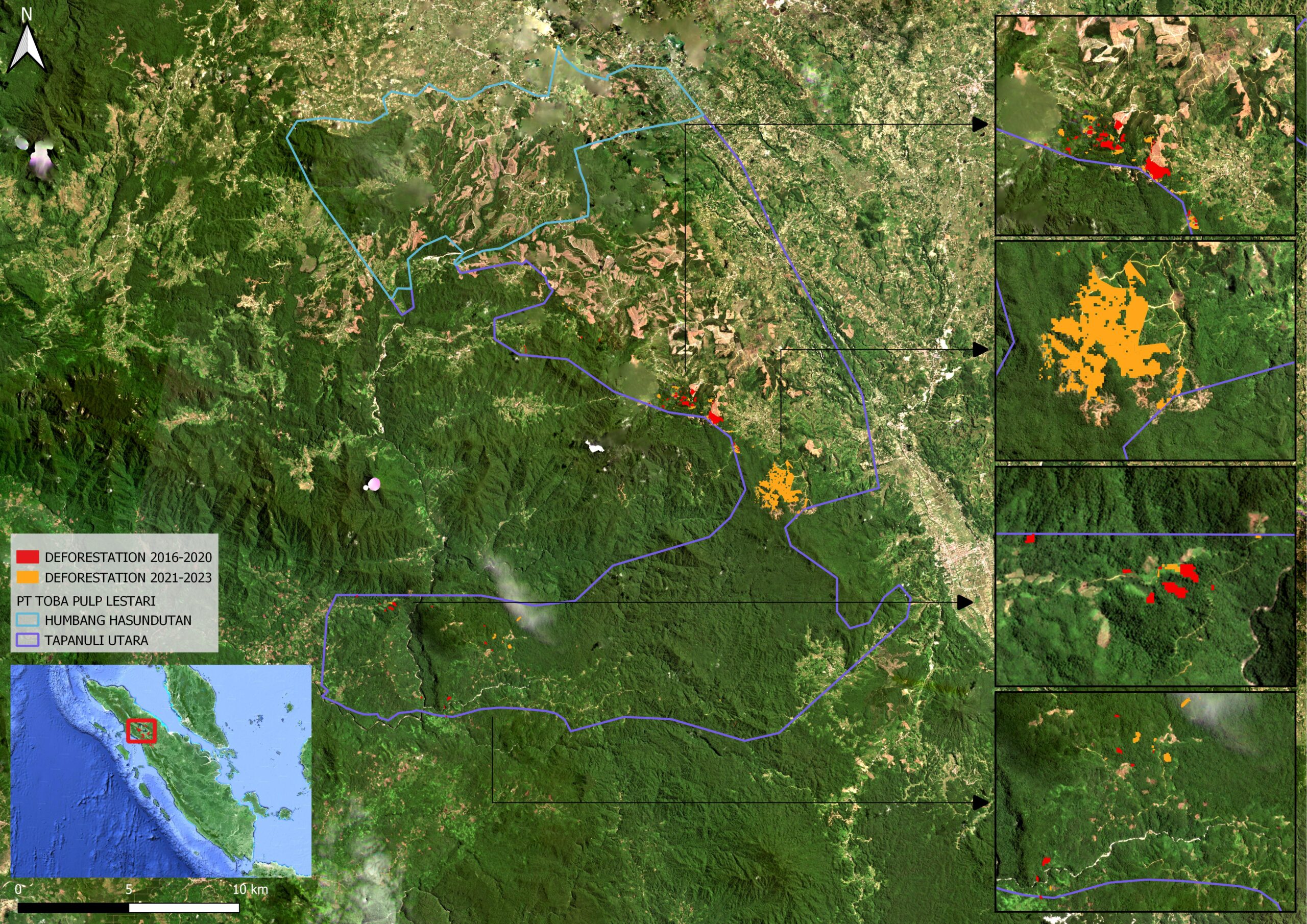For more detailed spatial data on this additional analysis review our second case report on Deforestation in PT. Toba Pulp Lestari’s concessions in Indonesia.