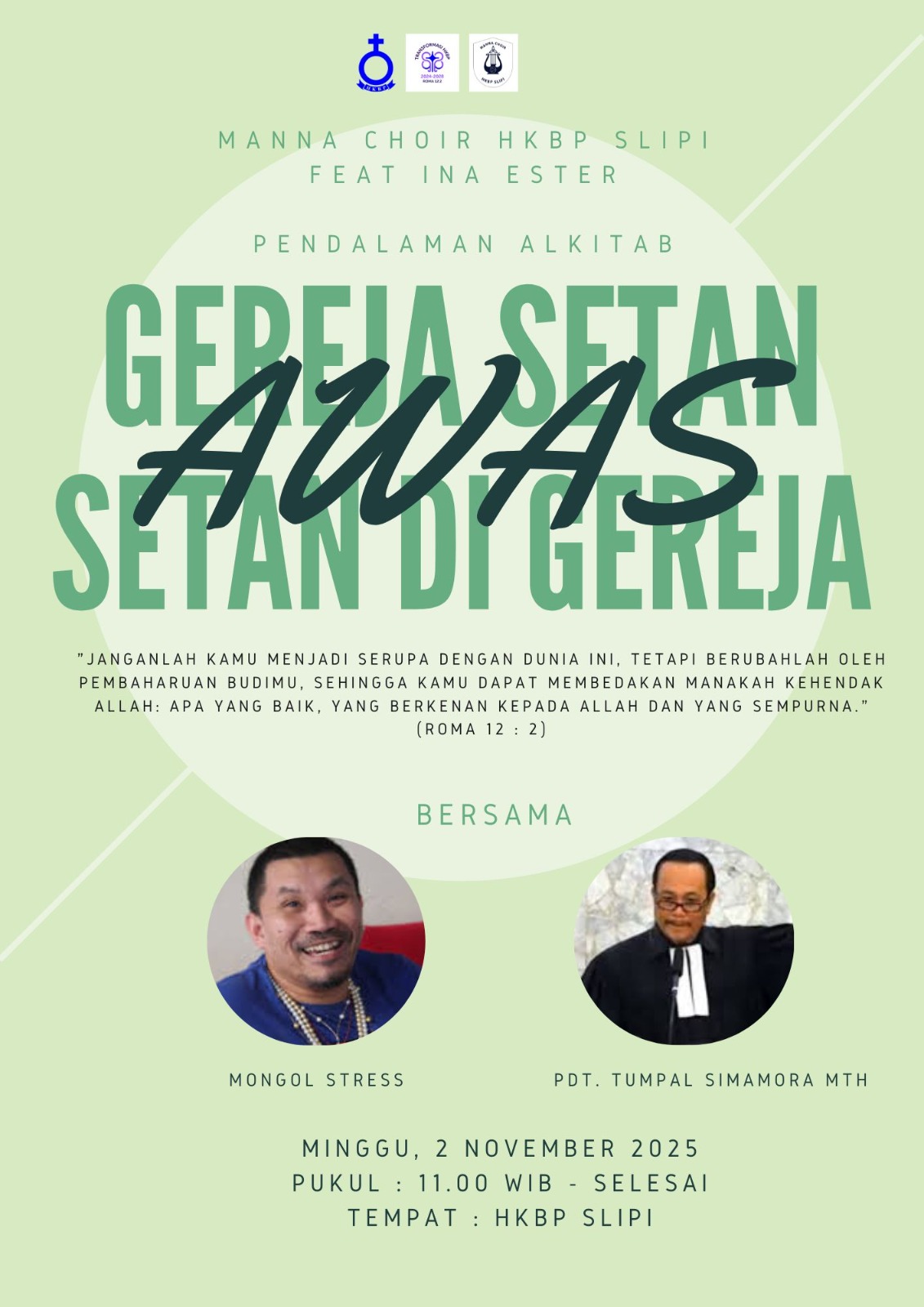 #HKBPSlipi #PendalamanAlkitab #MannaChoir #GerejaSetan #SetanDiGereja #Awas #MongolStress #PdtTumpalSimamora